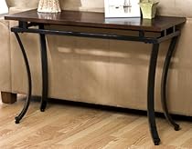 Southern Enterprises Add this sofa table to your home today for an instant upgrade The black metal frame has legs that arch inward to create a distinct look that adds a sense of flow to your room Gracing the top of the frame is a beautifully stained espresso top that gushes with style Measures 16 inches deep by 42 inches wide by 28 inches tall Rich, espresso-stained tabletop offers a subtly color-blocked finish ... »»