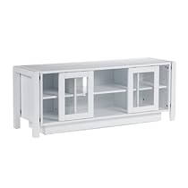 Southern Enterprises conveniences, features a wide surface at the appropriate height for a large flat-screen television The two doors feature a unique sliding action to open each section of this unit Holding up to 175-pound., this modern media center will accommodate up to a 50-inch flat panel television Reinforced end panels and platform-style base; electrical hole cutout 3 separate cabinets, each with an adjustable shelf; 2 sliding glass-paneled doors; painted-white finish ... »»